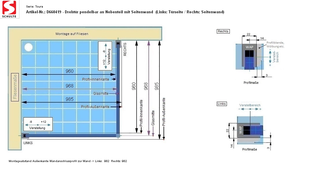 - Fliesenmaß Glasmitte rechts 968 mm