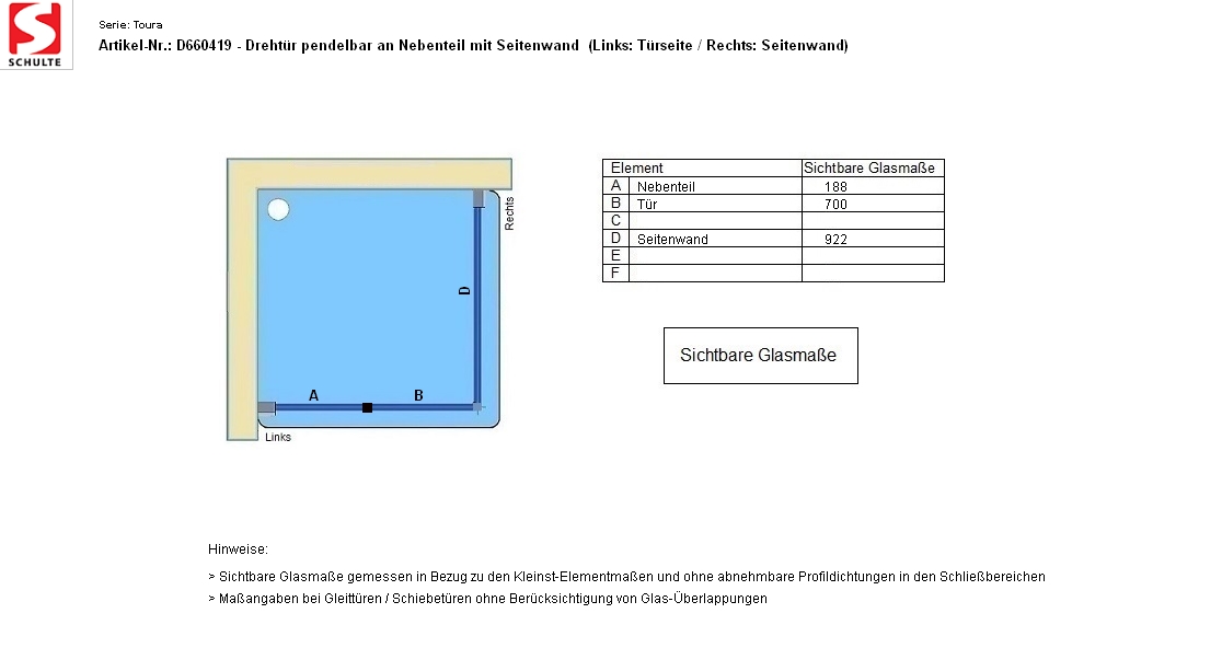 - Sichtbare Glasmaße - Artikel D660419