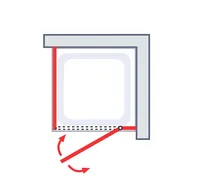 - versetzter Drehpunkt der Tür eignet sich optimale bei bestehenden Regalen, Waschtischen, Heizkörpern etc. im Wandanschlussbereich vor der Duschtür
