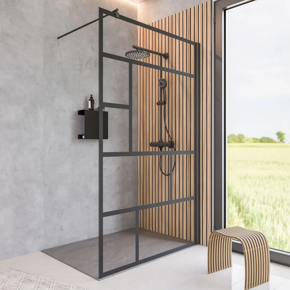 Alexa Style 2.0 - Duschwand Walk In, 1200 mm, Mattschwarz, Atelier, versiegelt