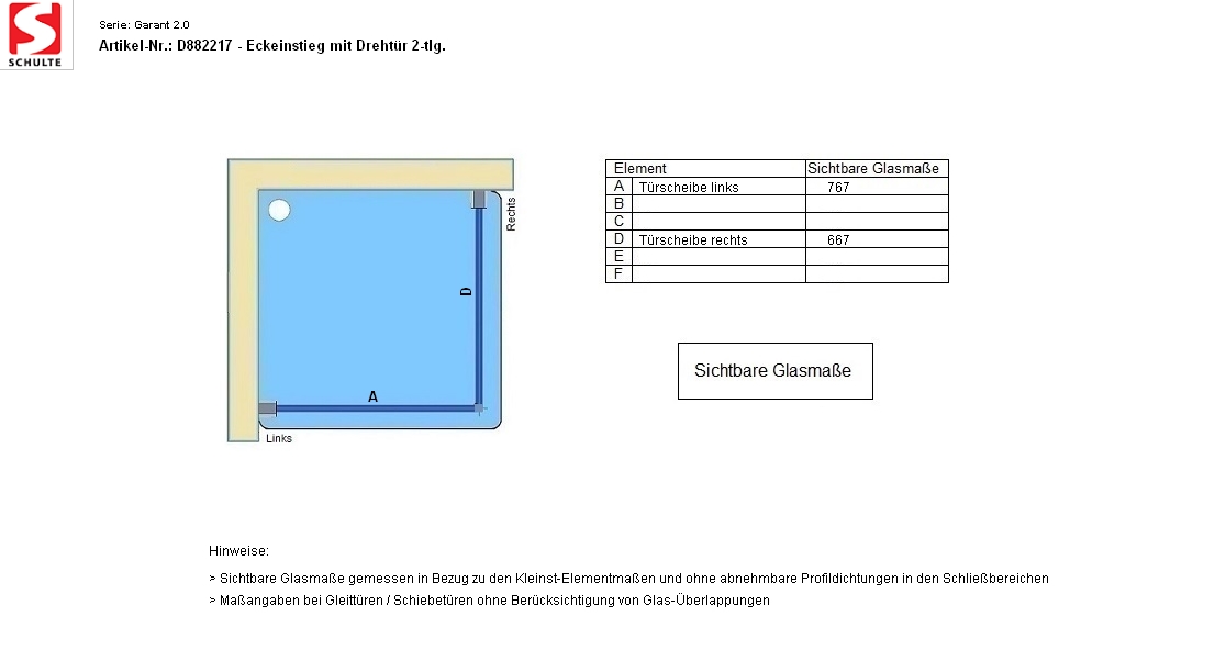 - Modell Eckeinstieg mit Drehtür 2-tlg.