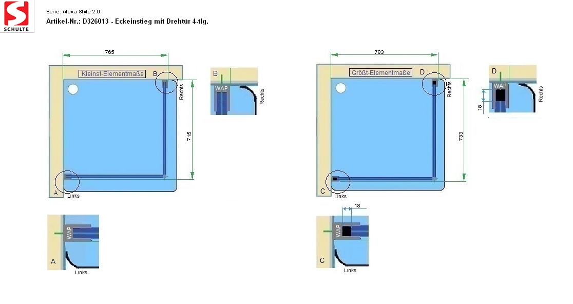 - Modell Eckeinstieg mit Drehtür 4-tlg.