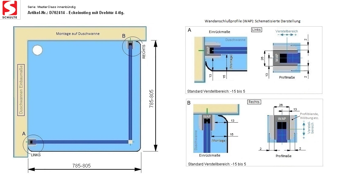 785-805 mm - Duschwanneneinbaumaß (rechts) 785-805 mm