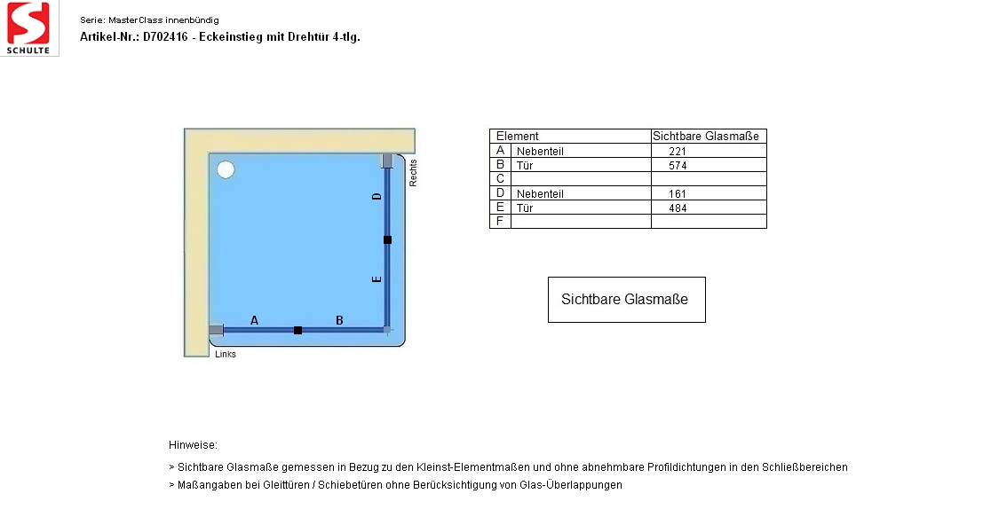 - Sichtbare Glasmaße - Artikel D702416