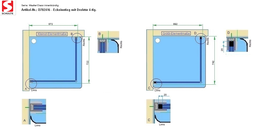 - Modell Eckeinstieg mit Drehtür 4-tlg.