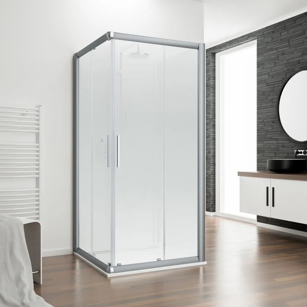 Kristall/Trend - Eckeinstieg II, 4-teilig, 1000x800 mm, 1850 mm, Alu-Natur, Nebel, versiegelt