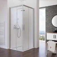 Kristall/Trend - Eckeinstieg II, 4-teilig, 800x800 mm, 1850 mm, Alu-Natur, Dezent