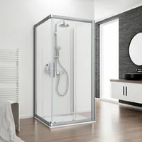 Kristall/Trend - Eckeinstieg II, 4-teilig inklusive Seitenwand (U-Kabine)Duschkabinenserie Kristall/Trend Unsere moderne Duschkabinenserie Kristall/Trend ist mit umlaufenden Aluminiumprofilen ausgestattet, welche mit den Glaselementen – ganz gleich, ob es sich um eine Variante mit Echtglas (Sicherheitsglas, ESG) oder Kunstglas handelt – perfekt harmonieren. Die hochwertigen Aluminiumprofile und der umlaufende Magnetverschluss verleihen den Duschen der Serie zudem eine hohe Dichtigkeit und gewährleisten ein zuverlässiges Schließverhalten. Kristall/Trend-Duschkabinen können wahlweise in Eigenregie mithilfe unserer Montageanleitung angebracht werden oder durch unsere Servicetechniker. Hierfür buchen Sie einfach unseren zuverlässigen Montageservice.