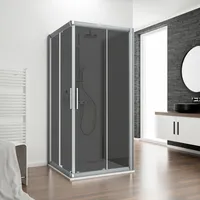 Kristall/Trend - Eckeinstieg II, 4-teilig inklusive Seitenwand (U-Kabine), 750-1200 mm, Alu-Natur, Grau-Anthrazit