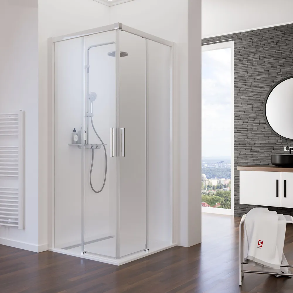 Kristall/Trend - Eckeinstieg II, 4-teilig, ohne unteres ProfilDuschkabinenserie Kristall/Trend Unsere moderne Duschkabinenserie Kristall/Trend ist mit umlaufenden Aluminiumprofilen ausgestattet, welche mit den Glaselementen – ganz gleich, ob es sich um eine Variante mit Echtglas (Sicherheitsglas, ESG) oder Kunstglas handelt – perfekt harmonieren. Die hochwertigen Aluminiumprofile und der umlaufende Magnetverschluss verleihen den Duschen der Serie zudem eine hohe Dichtigkeit und gewährleisten ein zuverlässiges Schließverhalten. Kristall/Trend-Duschkabinen können wahlweise in Eigenregie mithilfe unserer Montageanleitung angebracht werden oder durch unsere Servicetechniker. Hierfür buchen Sie einfach unseren zuverlässigen Montageservice.