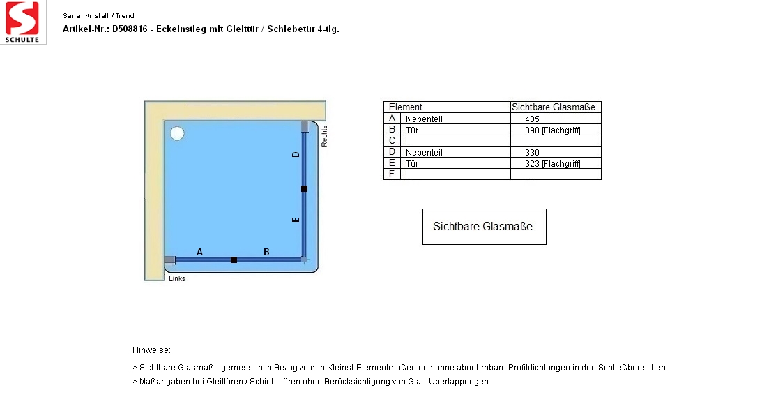 Kristall/Trend - Eckeinstieg II, 4-teilig, ohne unteres ProfilDuschkabinenserie Kristall/Trend Unsere moderne Duschkabinenserie Kristall/Trend ist mit umlaufenden Aluminiumprofilen ausgestattet, welche mit den Glaselementen – ganz gleich, ob es sich um eine Variante mit Echtglas (Sicherheitsglas, ESG) oder Kunstglas handelt – perfekt harmonieren. Die hochwertigen Aluminiumprofile und der umlaufende Magnetverschluss verleihen den Duschen der Serie zudem eine hohe Dichtigkeit und gewährleisten ein zuverlässiges Schließverhalten. Kristall/Trend-Duschkabinen können wahlweise in Eigenregie mithilfe unserer Montageanleitung angebracht werden oder durch unsere Servicetechniker. Hierfür buchen Sie einfach unseren zuverlässigen Montageservice.