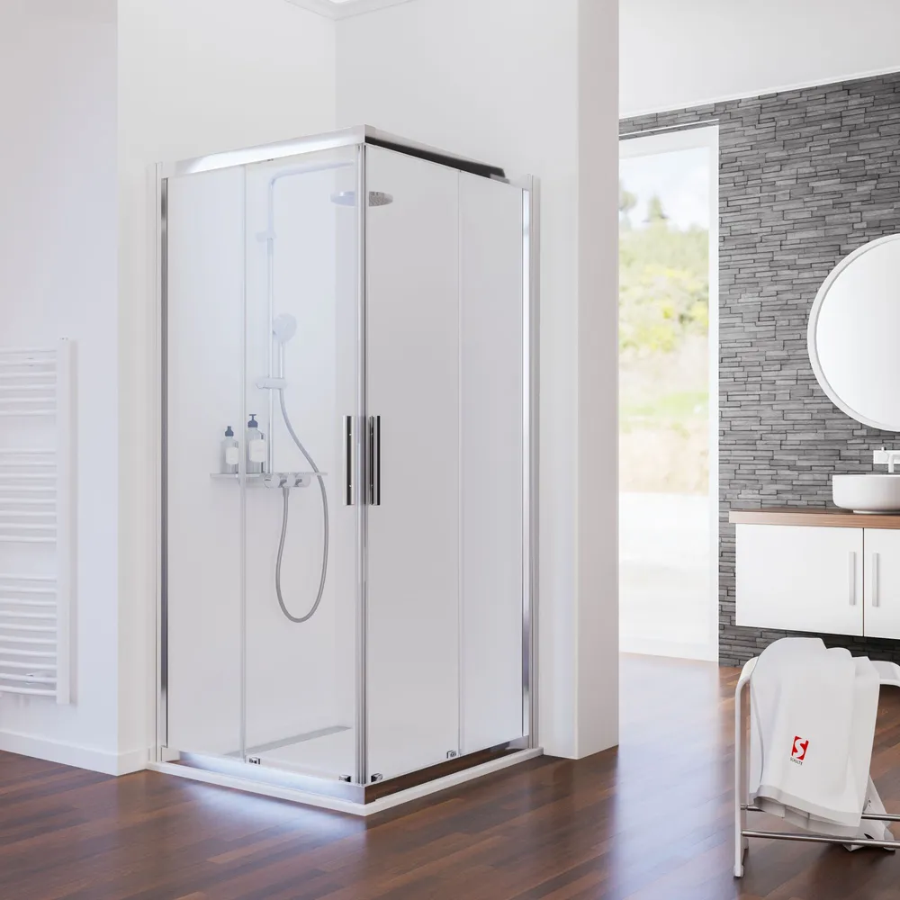 Kristall/Trend - Eckeinstieg II, 900x900 mm, 1850 mm, Chromoptik, Klar hell, versiegelt