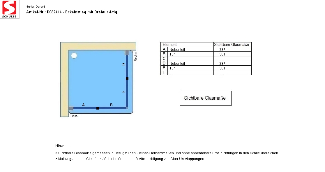 • Modell Eckeinstieg mit Drehtür 4-tlg.