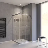 Sunny - Eckeinstieg mit Gleittür / Schiebetür 4-tlg., 750-900x750-900 mm, 1750 mm, Silberfarben, Querstreifen