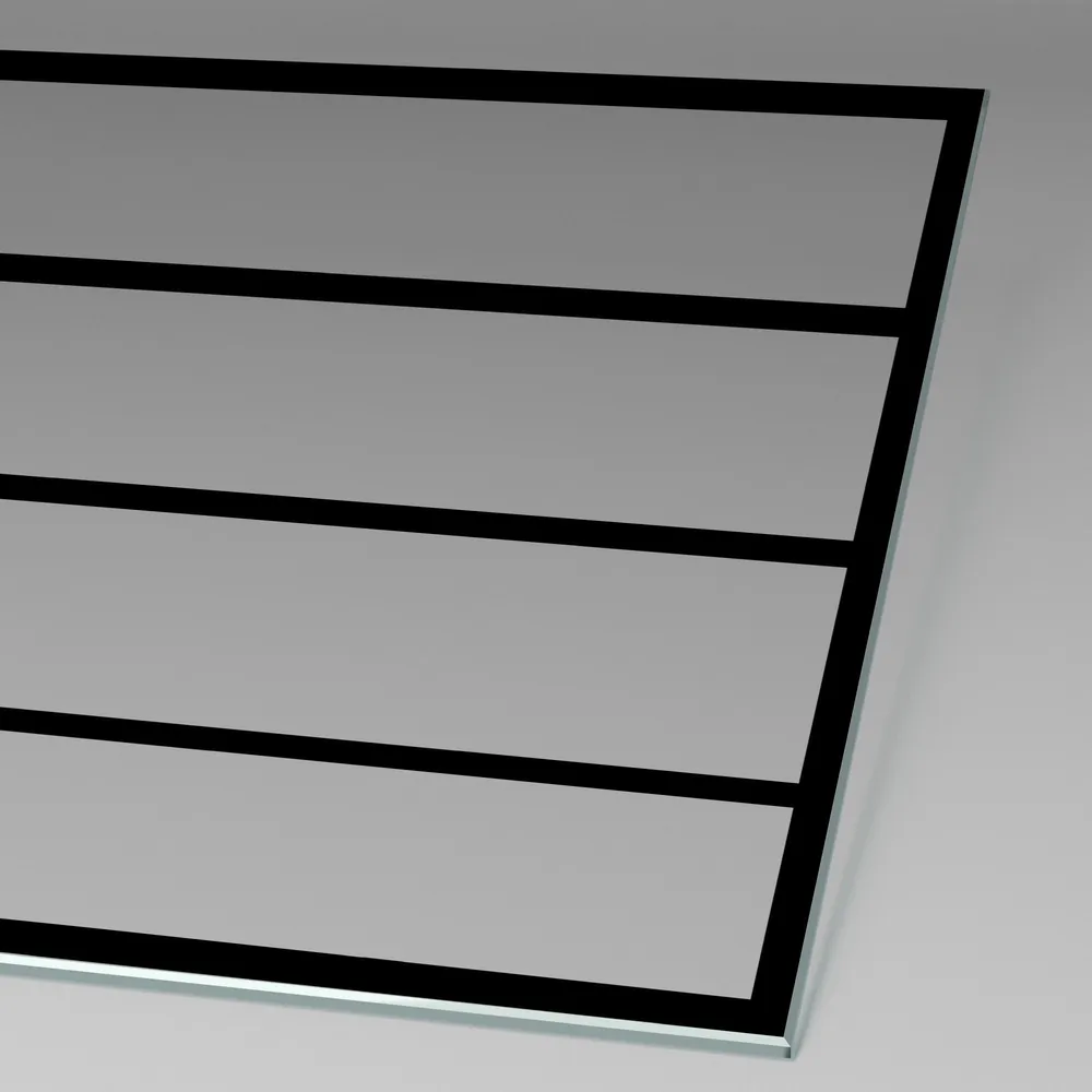 • Die Glasscheiben bestehen aus thermisch behandelten Glasscheiben sog. Einscheiben-Sicherheitsglas (ESG). Im Vergleich zu herkömmlichem Flachglas weist ESG eine wesentlich höhere Stoß- und Schlagfestigkeit auf. Bei einem Bruch zerfällt ESG in kleine, stumpfkantige Scherben und reduziert so das Verletzungsrisiko.
