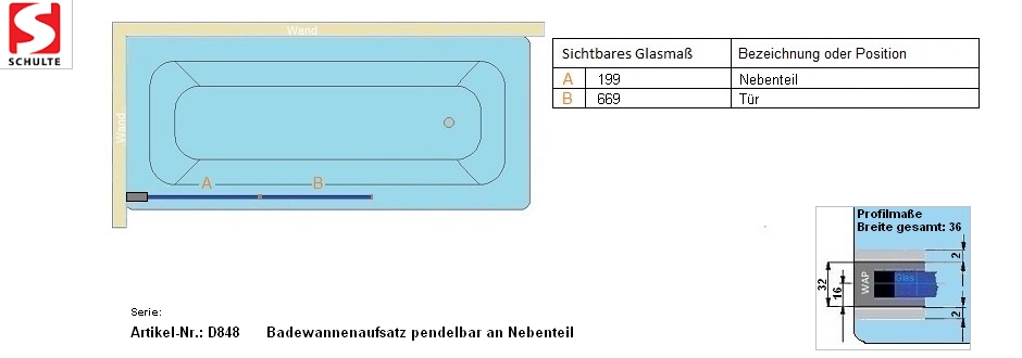 - Sichtbare Glasmaße+Profil - Artikel D848