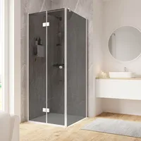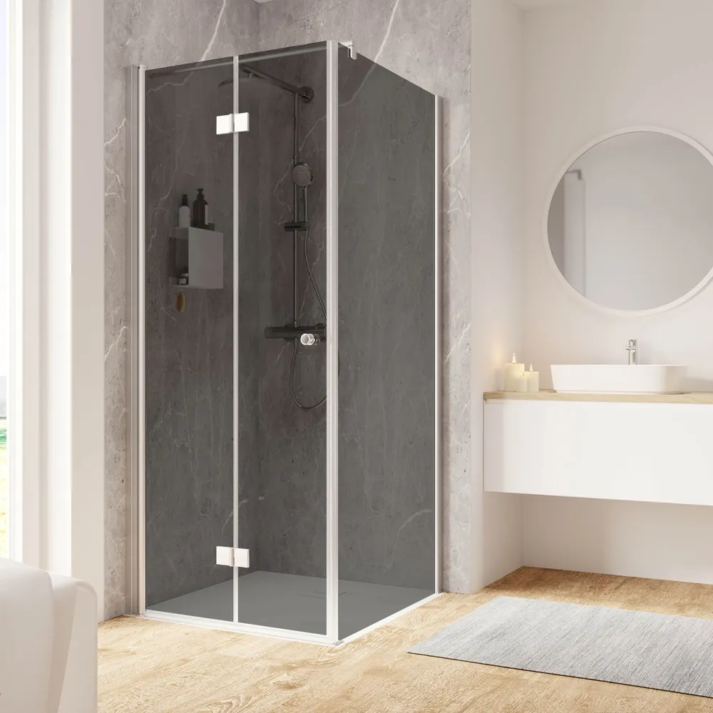 Garant 2.0 - Drehfalttür 2-tlg. mit Seitenwand, 900x900 mm, 2000 mm, Scharnier Eckig, Alu-Natur, Grau-Anthrazit
