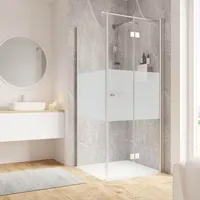 Garant 2.0 - Drehfalttür 2-tlg. mit Seitenwand, 900x900 mm, 2000 mm, Scharnier Halbkreis, Alu-Natur, Dezent