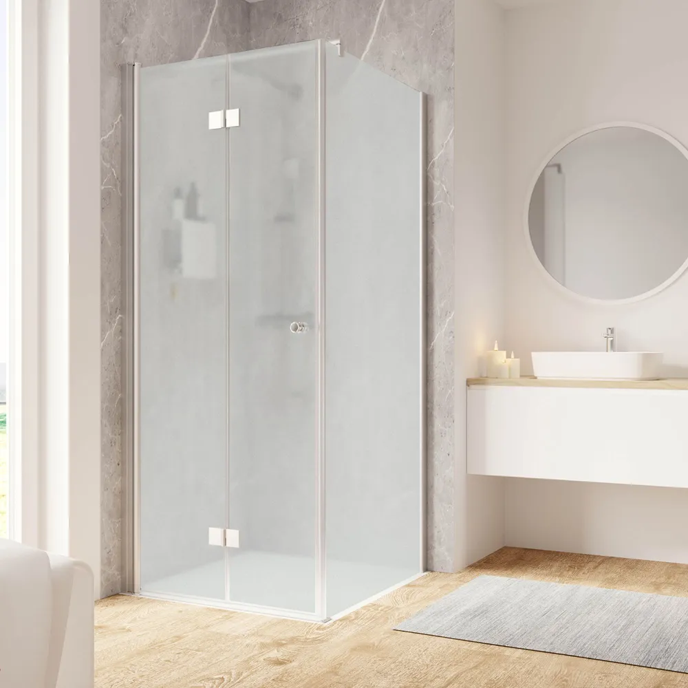 Garant 2.0 - Drehfalttür inklusive Seitenwand, 750x750 mm, 2000 mm, Scharnier Halbkreis, Alu-Natur, Matt-Sandgestrahlt