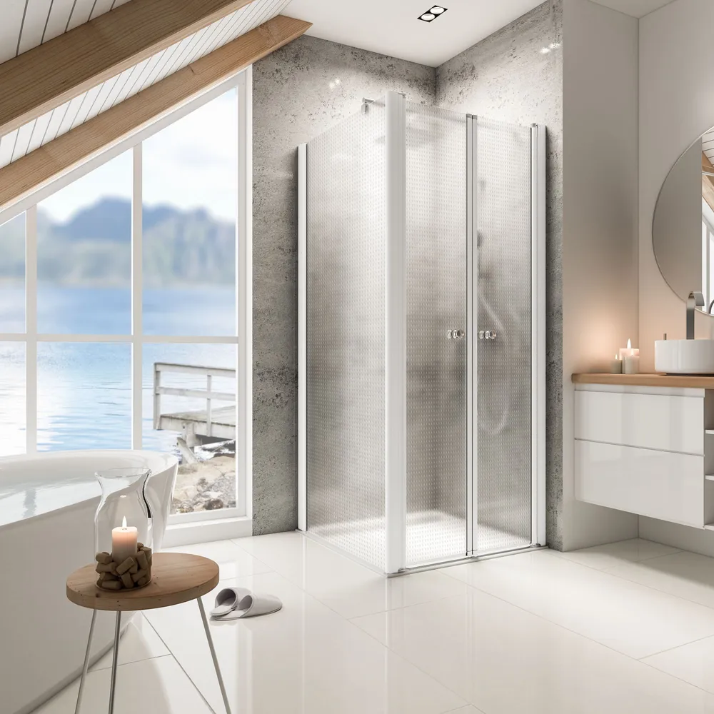 Garant - Pendeltür, 2-teilig für Seitenwand, 900 mm, 2000 mm, 04 - Alpinweiß, Carré, versiegelt