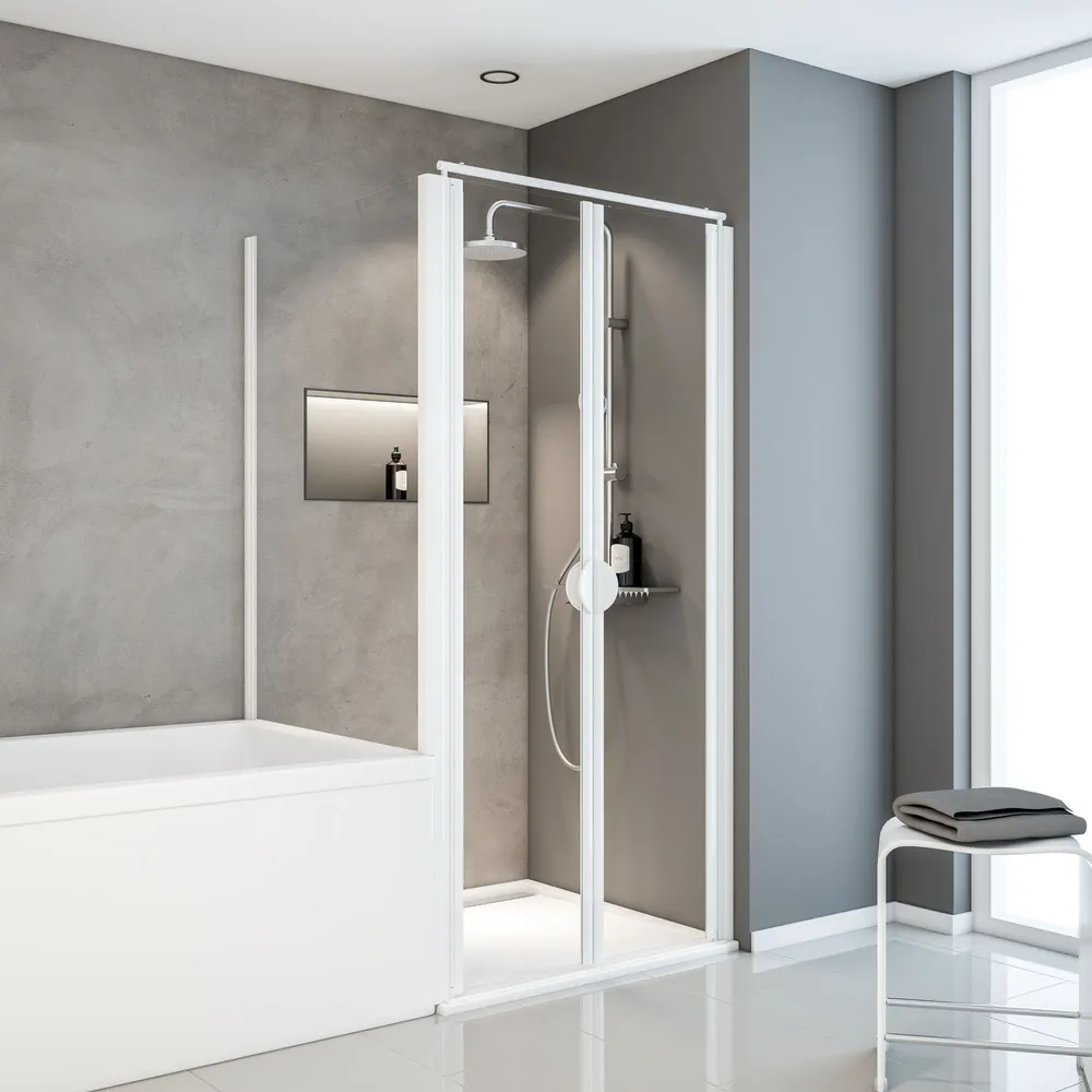 Sunny - Pendeltür, 2-teilig inklusive verkürzter Seitenwand, 700-1100 mm, Alpinweiß, Klar hell