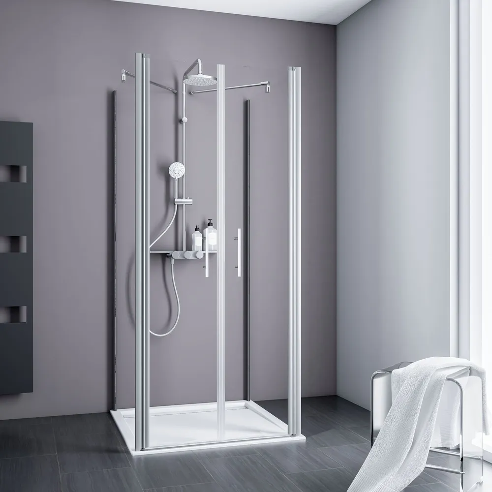 Alexa Style 2.0 - Pendeltür inklusive zwei Seitenwände (U-Kabine), 800x800 mm, 1920 mm, Alu-Natur, Klar hell