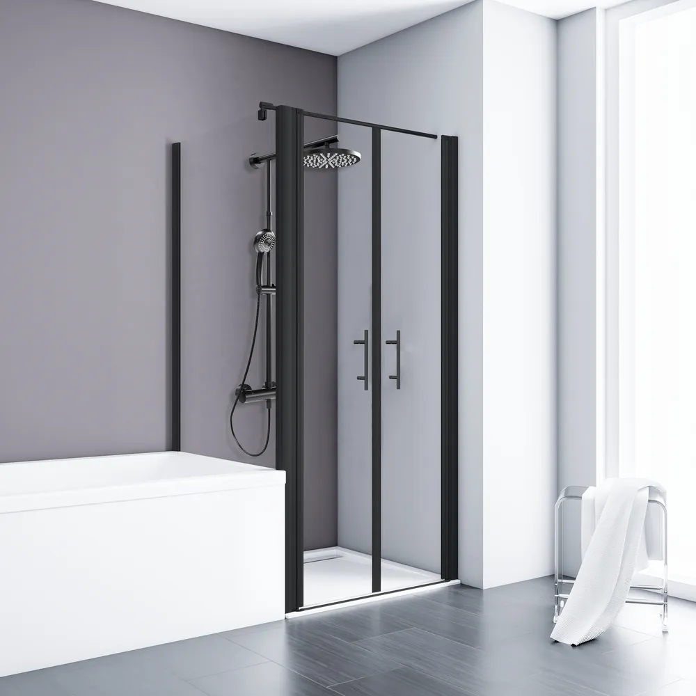 Alexa Style 2.0 - Pendeltür inklusive zwei Seitenwände (U-Kabine), 250-1200 mm, Mattschwarz, Klar hell, versiegelt