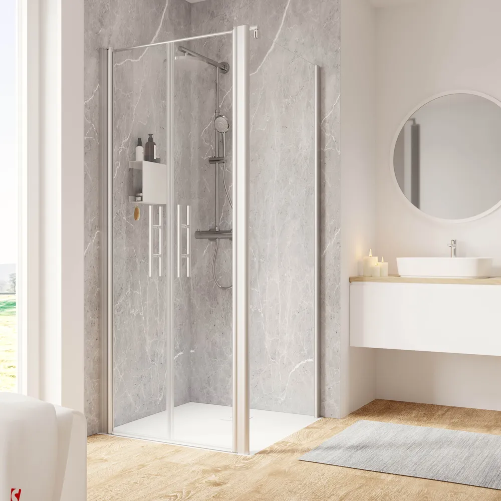Garant 2.0 - Pendeltür mit Seitenwand, 800x800 mm, 2000 mm, Alu-Natur, Klar hell, versiegelt