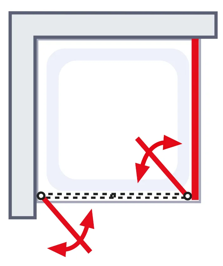 • Planung: Planen Sie das Bad so, dass es möglichst zu keinen Kollisionen zwischen den beweglichen bzw. schwenkbaren Teilen der Duschabtrennung/ des Badewannenaufsatzes und anderen Einrichtungsgegenständen wie Türen, Badmöbeln usw. kommen kann.