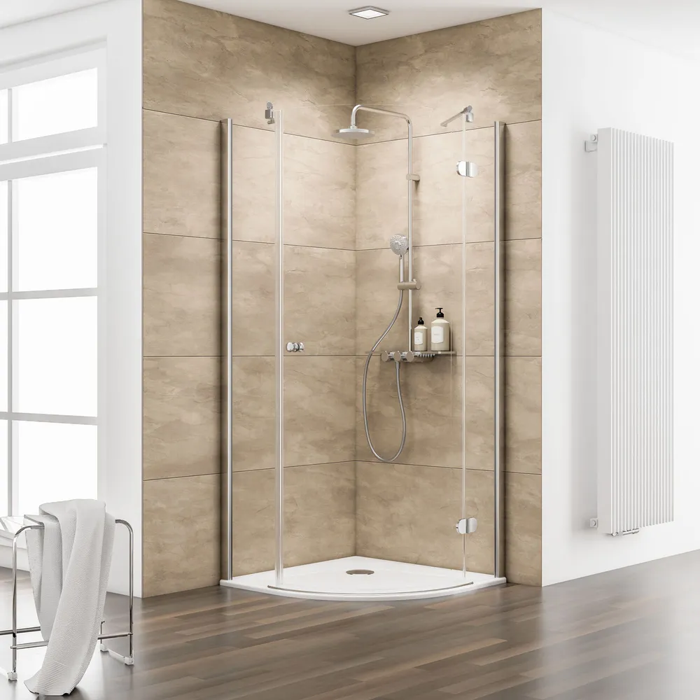 MasterClass - Runddusche, 3-teilig, 1000x900 mm, 2000 mm, Halbkreis (Heb-Senk), Edelstahloptik, Klar hell, versiegelt