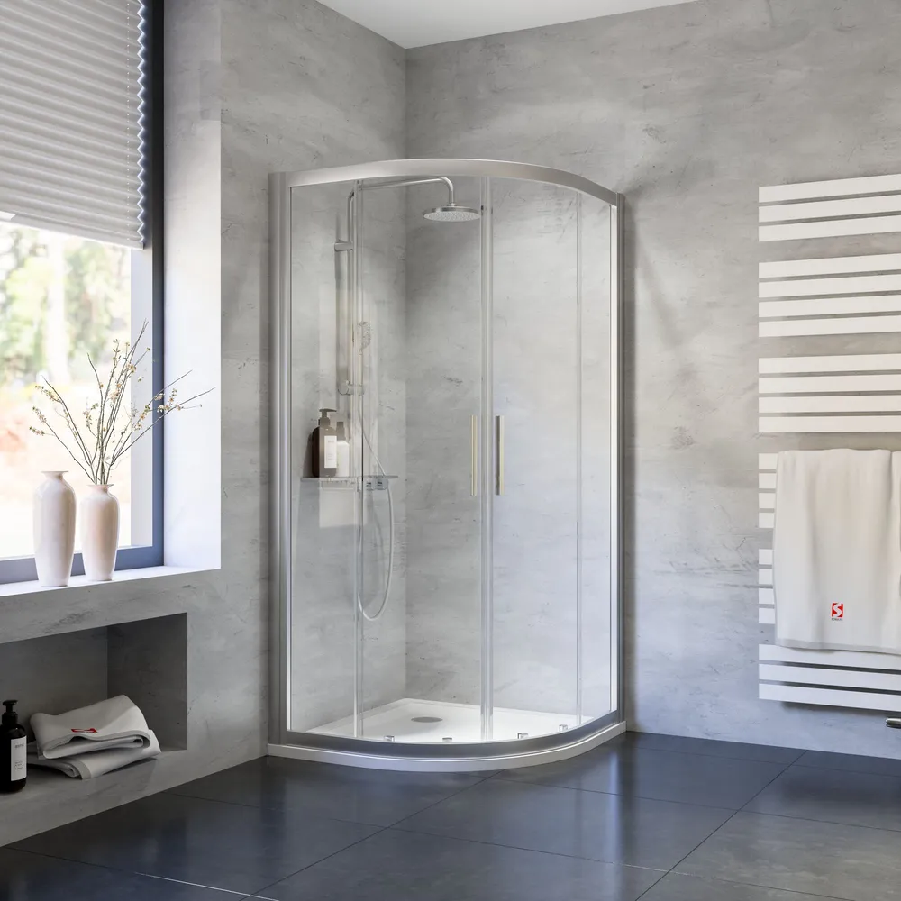 Kristall/Trend - Runddusche II, 4-teilig, 900x900 mm, 1850 mm, Alu-Natur, Klar hell, Radius: 550 mm