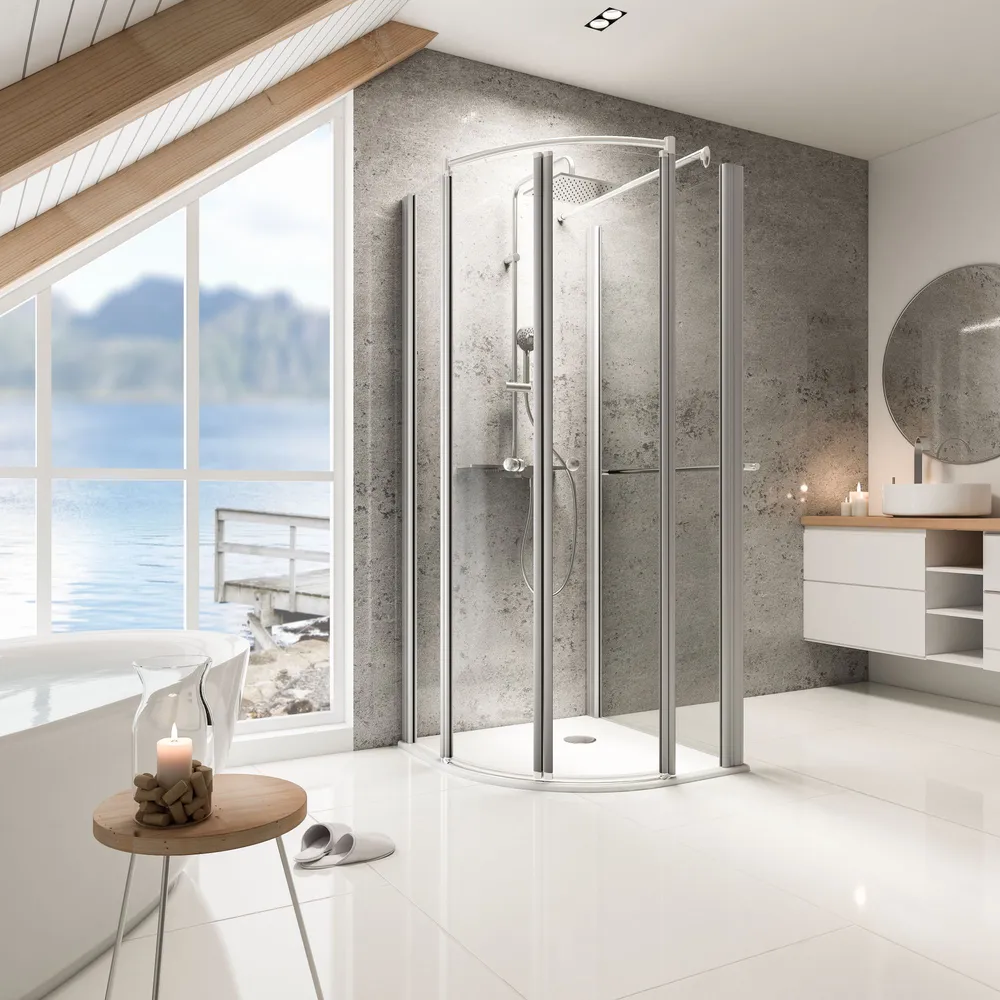 - Modell Runddusche mit Drehtür 4-tlg. mit Seitenwand (U-Kabine)