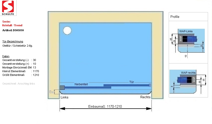 - Duschwanneneinbaumaß (rechts) 1170-1210 mm