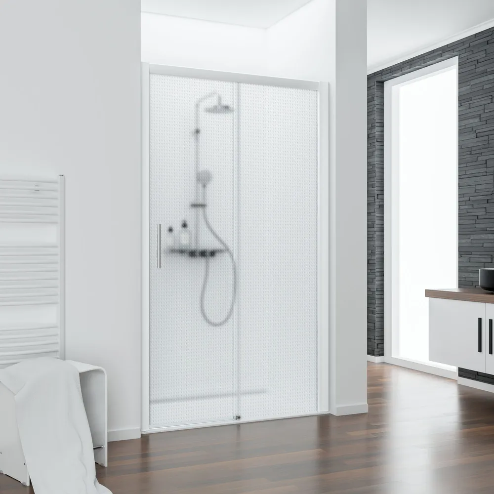Kristall/Trend - Schiebetür, 2-teilig in Nische, ohne unteres Profil, 1200-1600 mm, Alpinweiß, Carré, versiegelt
