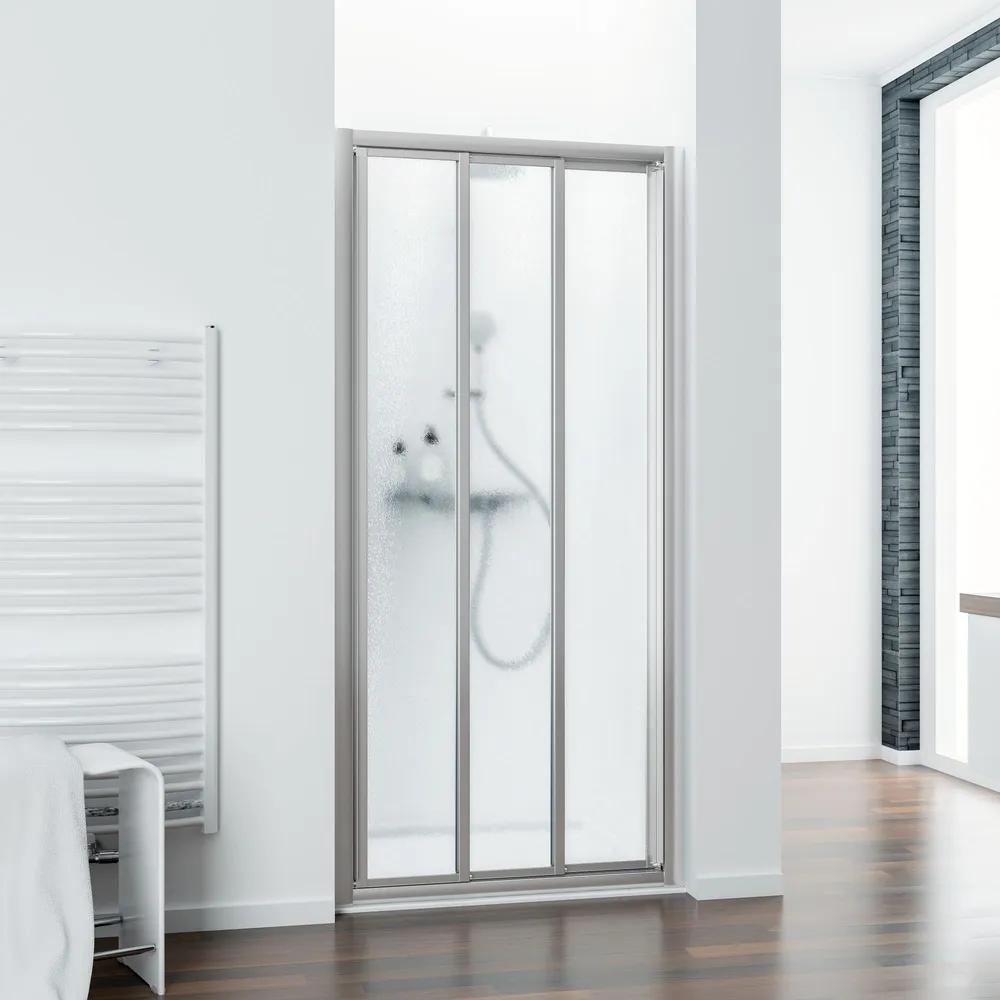 Kristall/Trend - Schiebetür, 3-teilig in Nische oder verkürzte Seitenwand, 800 mm, 1850 mm, Alu-Natur, Bella (Chinchilla-Struktur), versiegelt