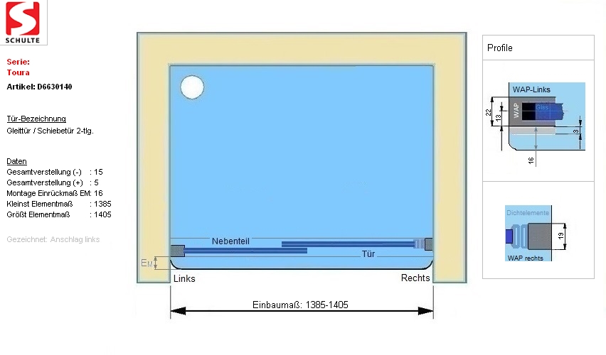 - Duschwanneneinbaumaß (rechts) 1385-1405 mm