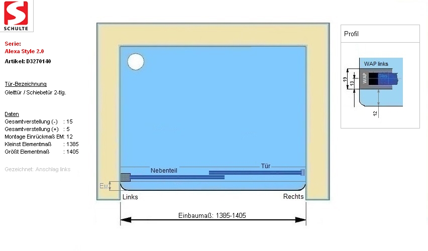19 mm - Wandanschlussprofilbreite (rechts) - mm