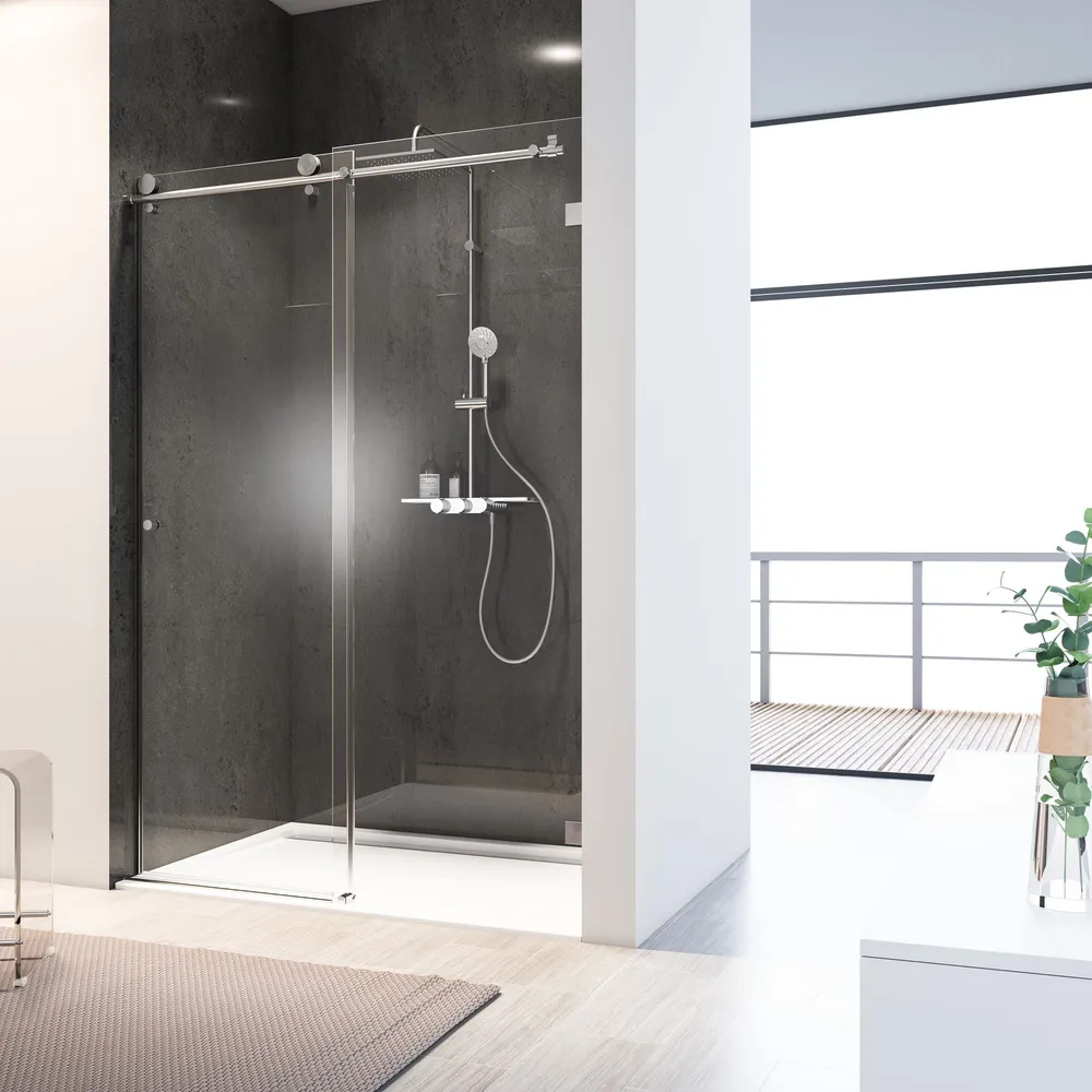Davita - Schiebetür in NischeDuschkabinenserie Davita Mit einer Duschabtrennung der Serie Davita erhalten Sie stets eine individuelle Maßanfertigung der Marke Schulte für Ihr Zuhause. Die Duschkabinen zeichnen sich durch ein dezentes, rahmenloses Design aus: Großflächige Echtglasscheiben (ESG) sowie formschöne, in den meisten Fällen innenbündige, Scharniere sind ein Haupterkennungsmerkmal der Artikel dieser Serie und gewährleisten eine einfache, alltägliche Pflege. Eine Davita kann zudem entsprechend Ihrer Bedürfnisse sowohl ebenerdig/barrierefrei auf Fliesen oder auf einer Duschwanne Ihrer Wahl positioniert werden. Über das moderne, zeitlose Design dieser Duschen hinaus ist bei der Serie Davita grundsätzlich der Rundum-Service von Schulte inbegriffen: Das Aufmaß für die Planung Ihres neuen Duschbereichs wird vor Ort professionell genommen. Außerdem werden die 8 mm starken Elemente aus Sicherheitsglas (ESG) werkseitig mit dem fixil-Glassiegel veredelt und auch die Montage in Ihrer Einbausituation wird durch fachkundige Techniker gewährleistet.