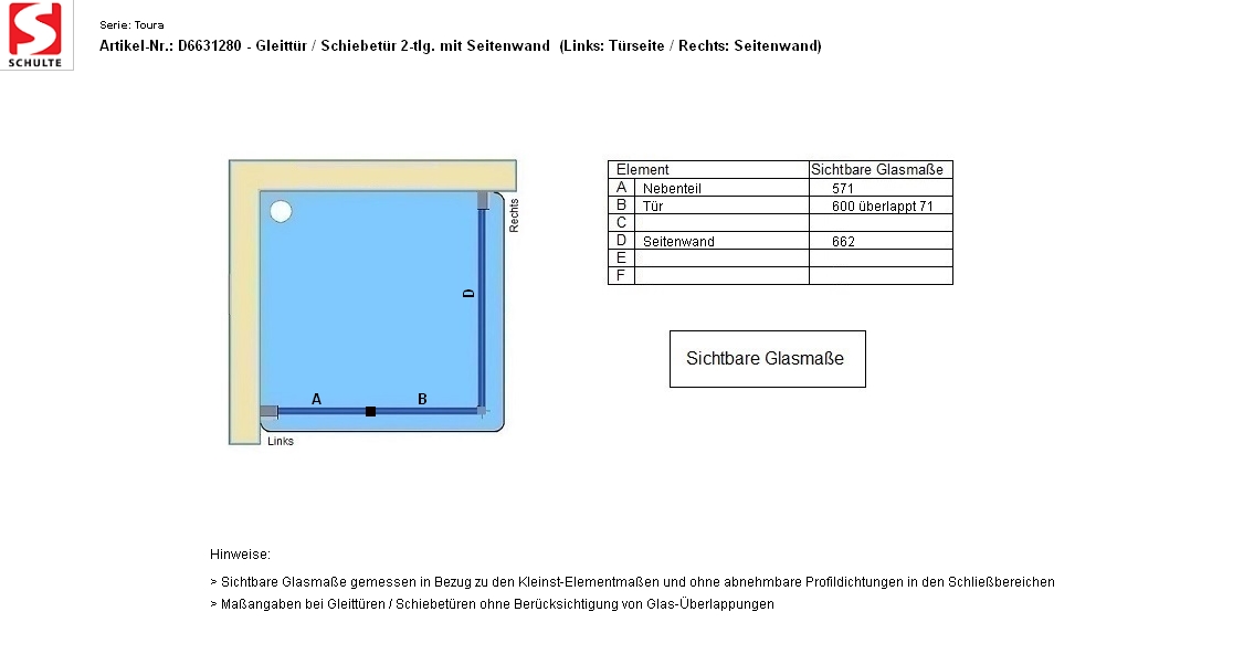 Scharnierform und Verstellbereich können einen entscheidenden Unterschied in der Bemaßung machen. Wenn Sie unsicher sind, wenden Sie sich bitte direkt an unseren Service.