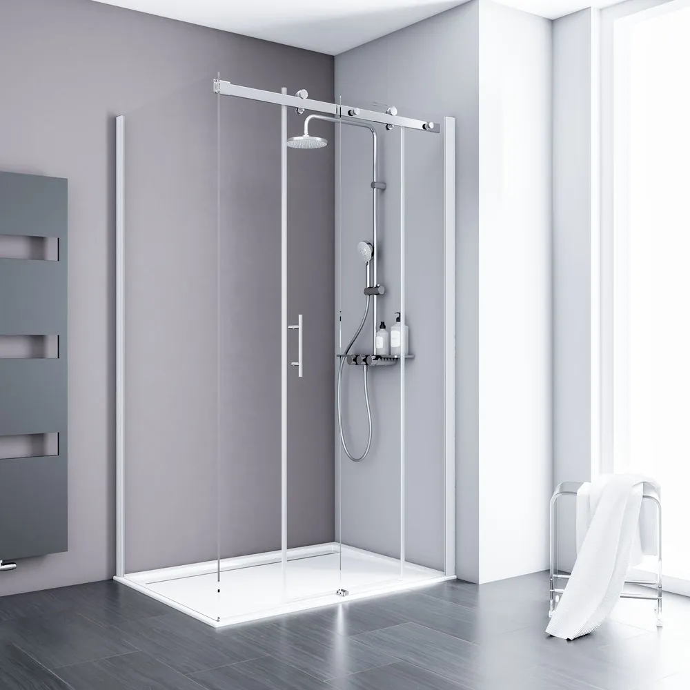 Alexa Style 2.0 - Schiebetür inklusive Seitenwand, 1200x900 mm, 2000 mm, Alpinweiß, Klar hell