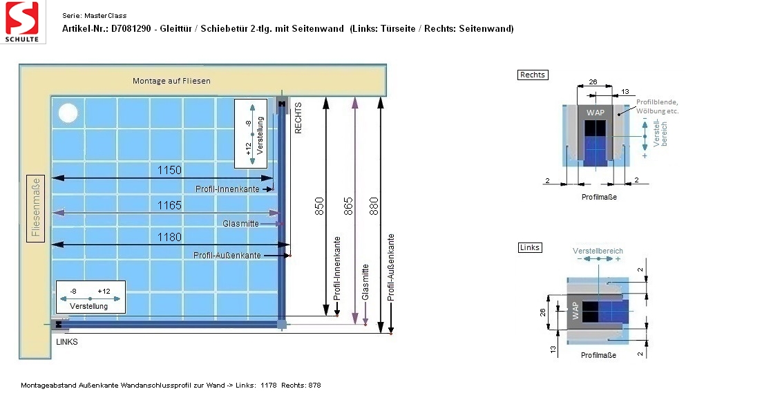 26 mm - Wandanschlussprofilbreite (rechts) 26 mm