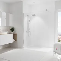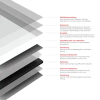 - Lieferumfang 1 x Duschrückwand, Fixierklebeband, Unterlegkeile