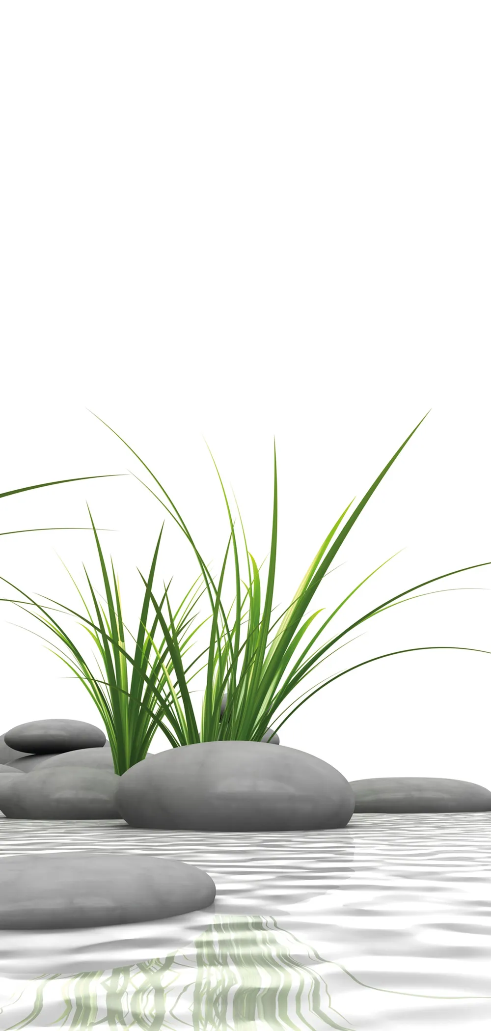 Duschrückwand - Zen Steine + Gras (632), matte Oberfläche, 900x2100 mm