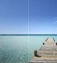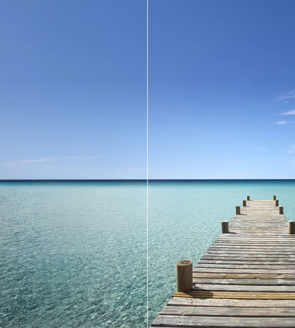Die Duschrückwände DecoDesign Foto „Steg Malediven, über Eck“ schaffen eine besondere Raumatmosphäre in Ihrem Bad: Klare Blautöne mit einem dezenten Holzsteg als Highlight ermöglichen Ihnen, sich mit wenig Vorstellungskraft wie im Urlaub zu fühlen - und das jeden Tag! Mit der großflächigen, aus zwei Aluminiumverbundplatten bestehenden Wandverkleidung haben Sie die Möglichkeit, Ihrem Bad mit wenigen Handgriffen einen völlig neuen Look zu verleihen.