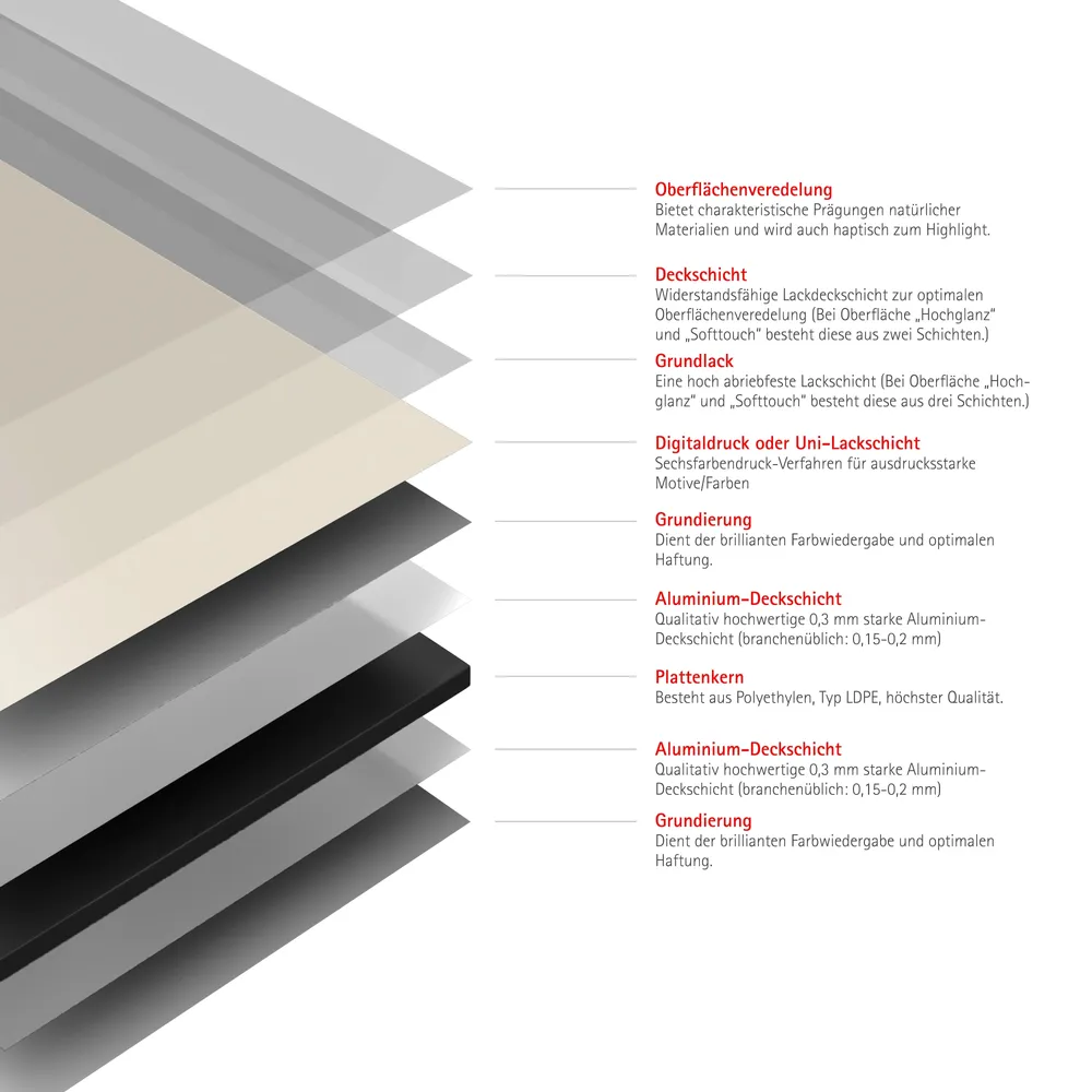 Einseitig digital bedruckt; inklusive Oberflächenveredelung