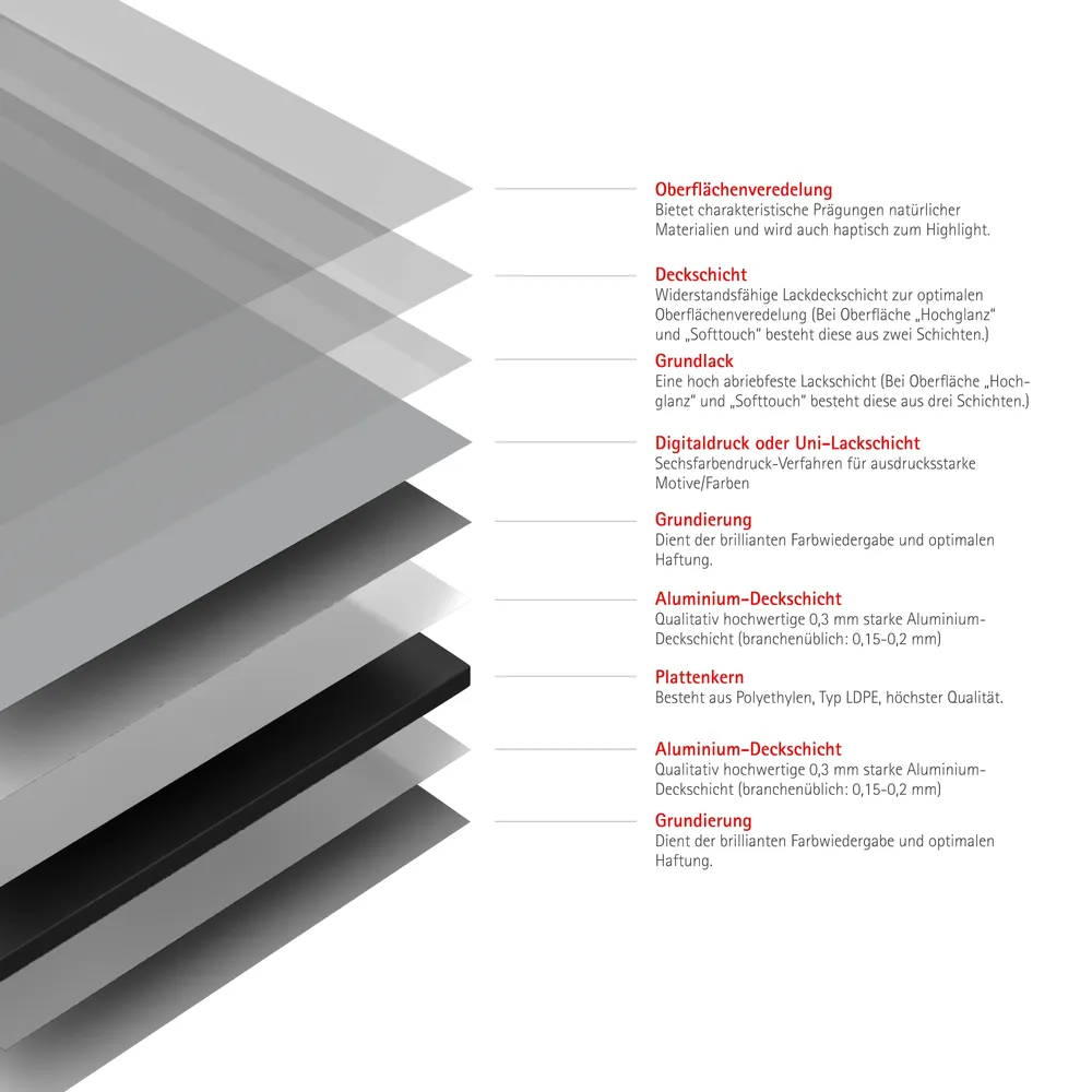 Einseitig digital bedruckt; inklusive Oberflächenveredelung