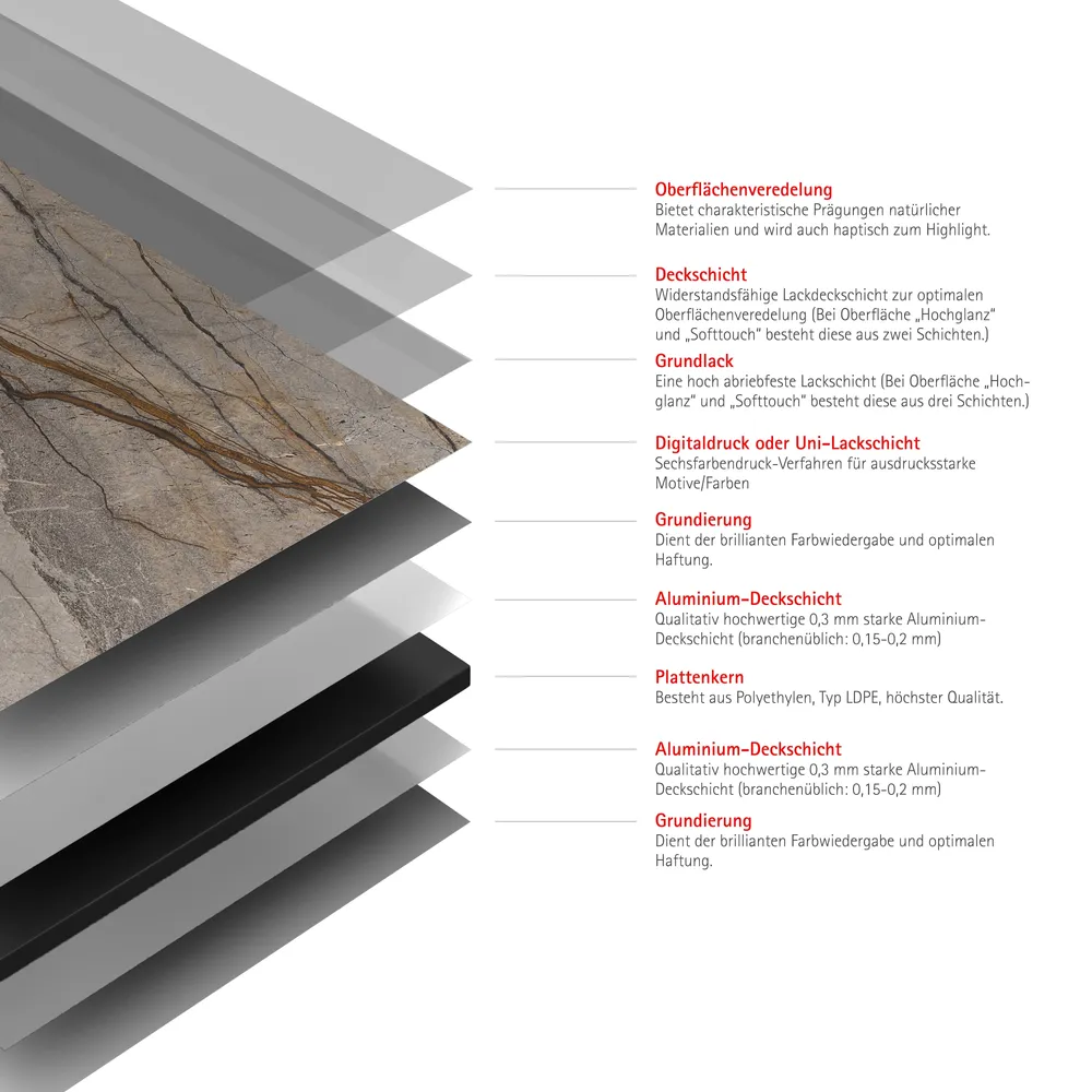 Einseitig digital bedruckt; inklusive Oberflächenveredelung