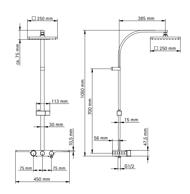 450 mm - Armatur Art Thermostat und Ablage (Sicherheitssperre bei 38 °C)