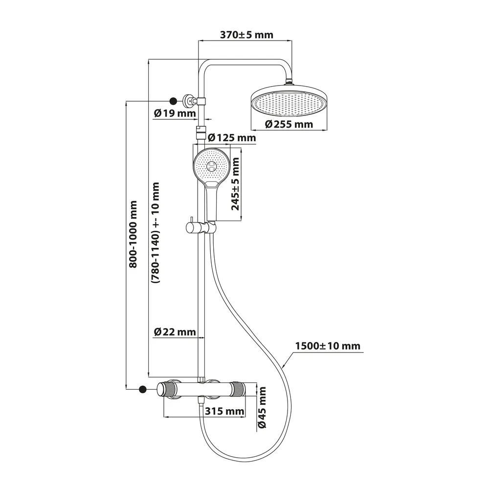 - Lieferumfang 1 x Duschsystem