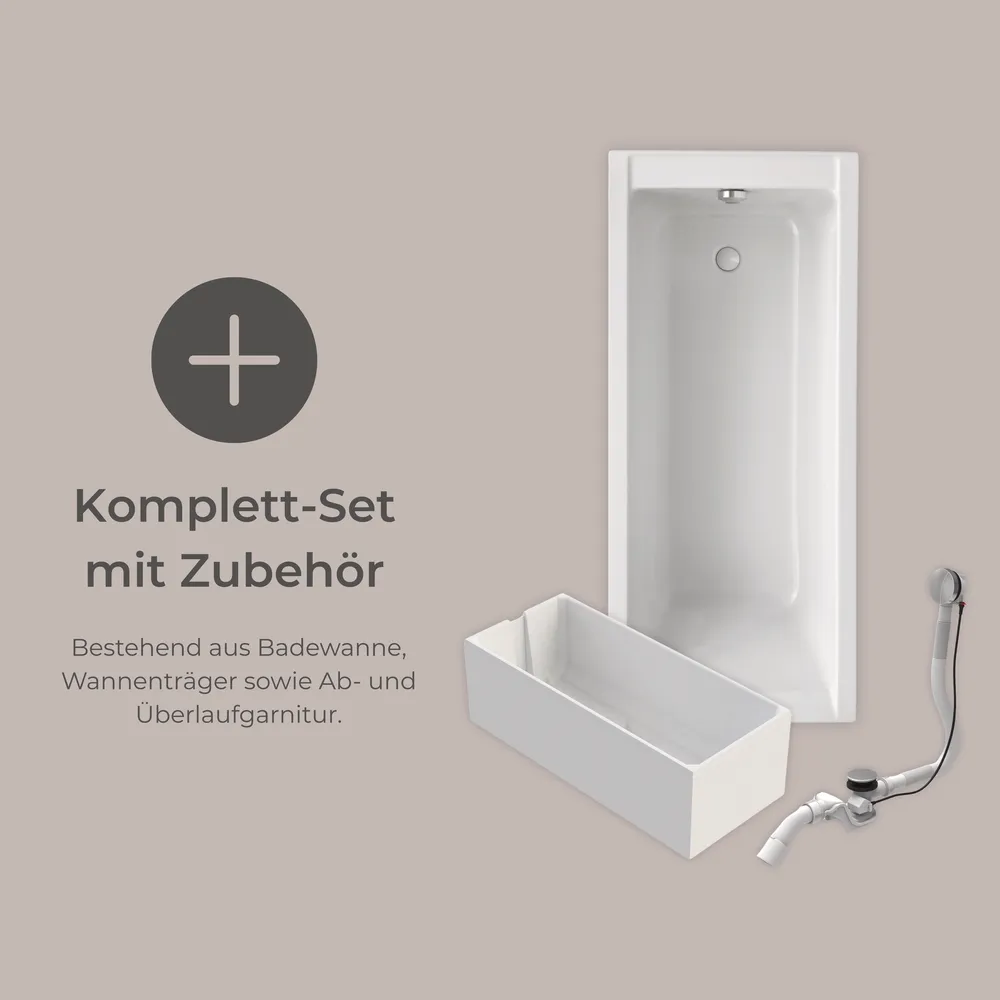 - Lieferumfang 1 x Badewanne, 1 x Wannenträger, 1 x Ab- /Überlauf